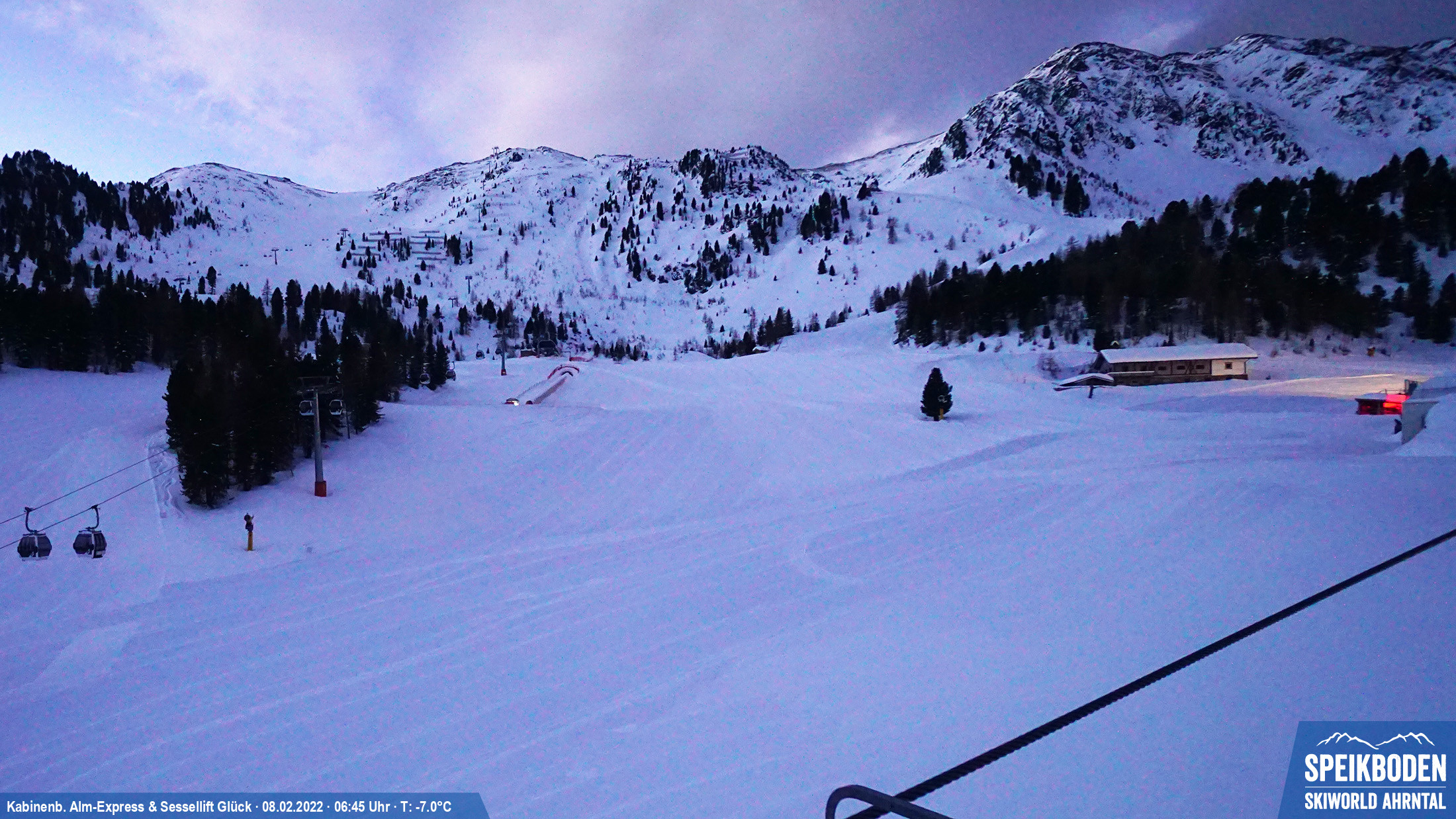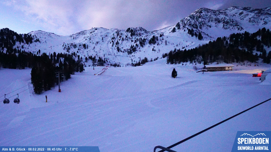 < Kabinenb. Alm & Sessellift Glück –Alm & Glück – Di, 8. Februar 2022 –08.02.2022 –8. Feb – --:-- 06:45 >